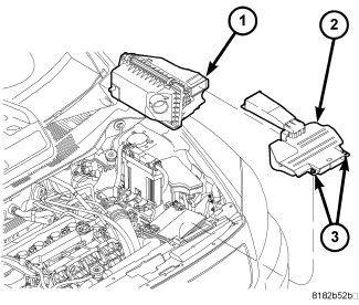 15. Install the air cleaner fresh air duct (2) and rotate the two retaining clips (3) to install.