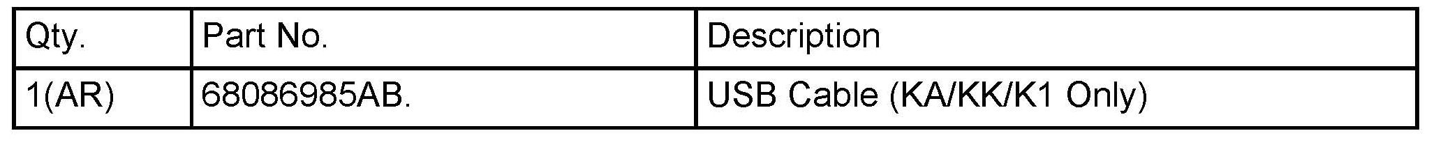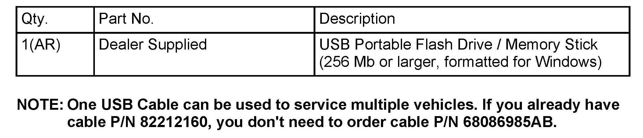The 2011 KA (Nitro), KK (Liberty), and K1 (Cherokee) have the capability of being upgraded by using the MOPAR PN # 82212160 (USB Harness) for the reflash process.