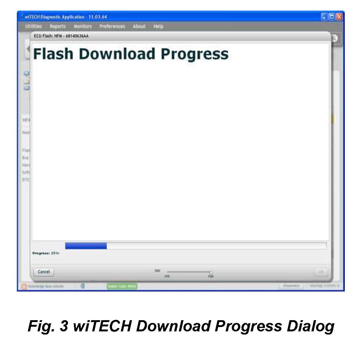2. Proceed with the wiTECH Diagnostic Application to reflash the HFM (Fig 1). Help using the wiTECH Diagnostic Application for flashing Hands Free Module is made available through the wiTECH Diagnostic Application. For instructions select the "HELP tab on upper portion of the wiTECH window, then "HELP CONTENTS. This will open the Welcome to wiTECH Help screen where help topics can be selected.