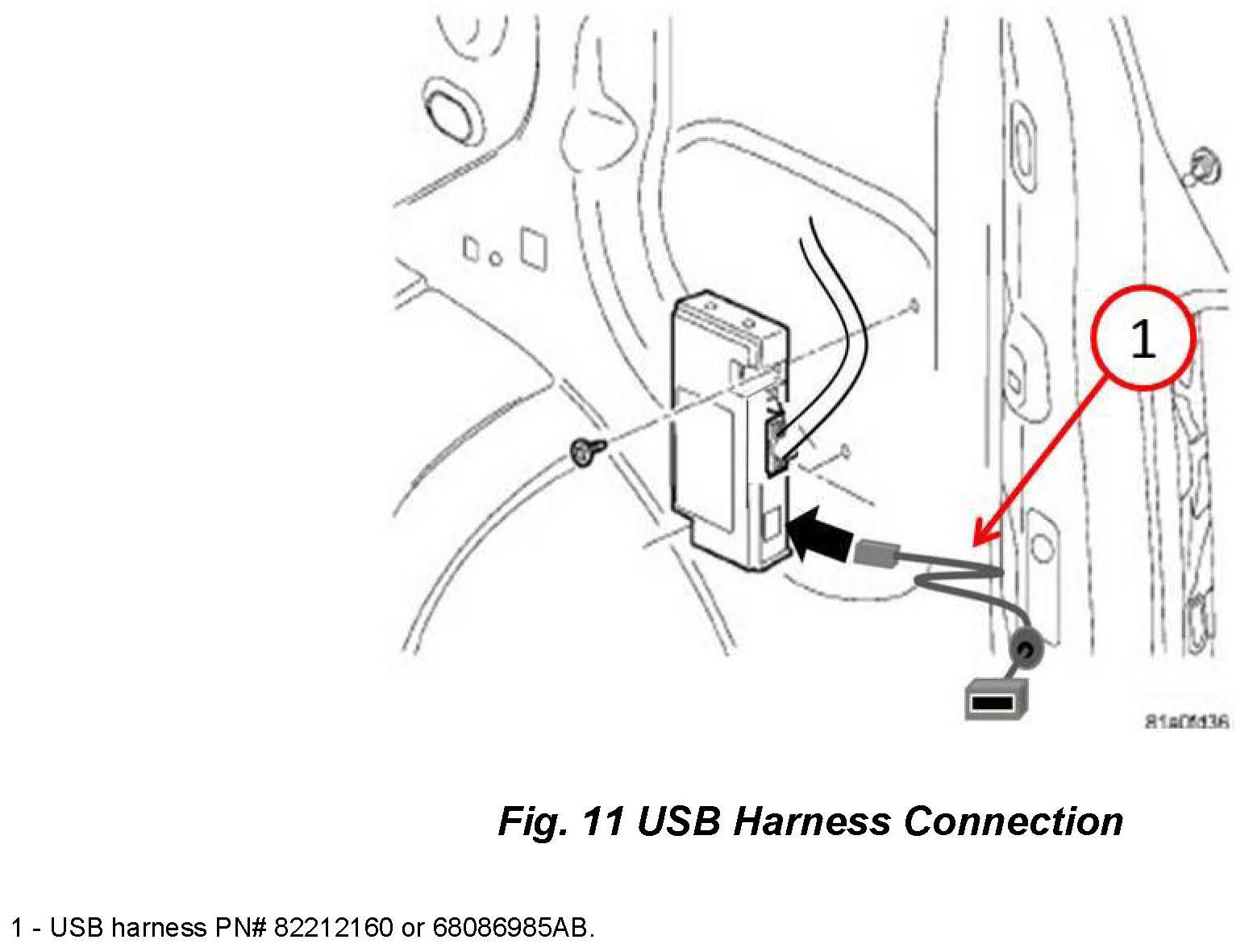 3. Connect the USB harness (PN # 82212160 or 68086985AB.) as shown in (Fig. 11).