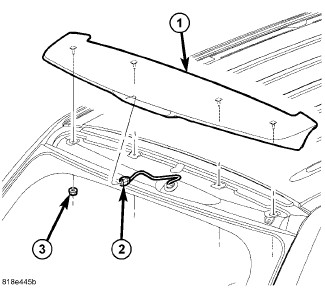 8. Install the liftgate spoiler (1), Liftgate Spoiler - Installation.