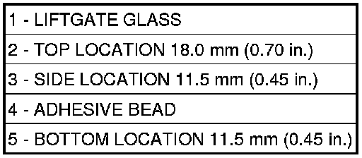 CAUTION: Always apply bead of adhesive to the liftgate glass. Always install the liftgate glass within 5 minutes after applying adhesive.