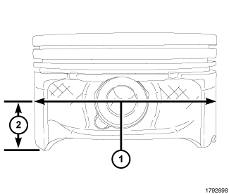 Piston and cylinder wall must be clean and dry. Piston diameter should be measured 90 degrees to piston pin (1).