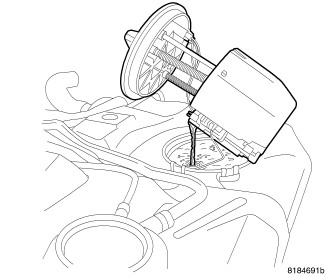 WARNING: The fuel pump module reservoir does not empty out when the tank is drained. The fuel in the reservoir will spill out when the module is removed.
