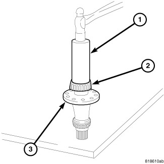 23. Using an inch pound torque wrench check and Pinion Nut Socket (1) check the rotating torque, it should be 30 in. lbs. Add 0.002 in. larger shim to increase rotating torque and add 0.002 in. smaller shim to decrease rotating torque. Repeat until proper turning torque is obtained.