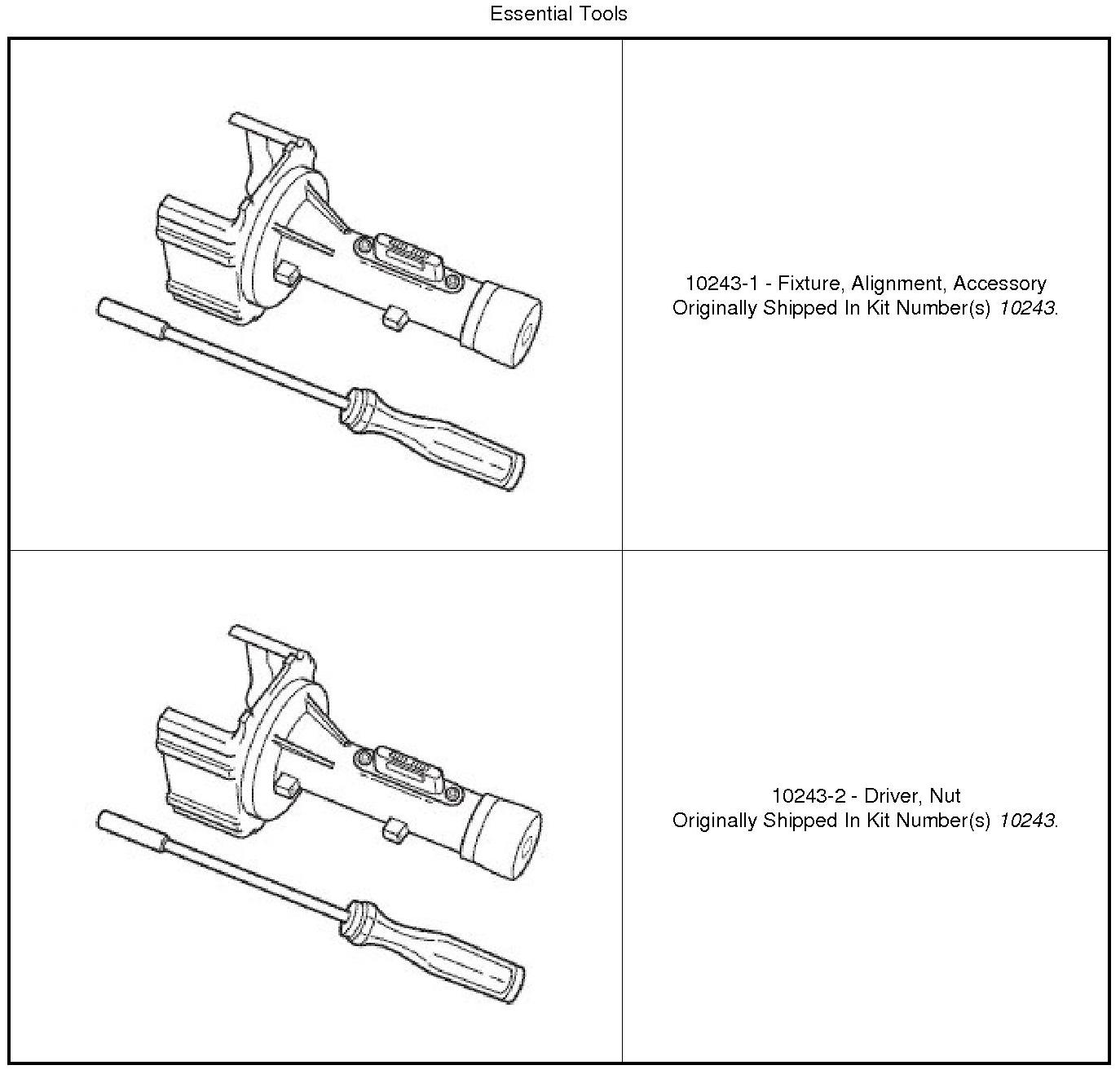 The adaptive speed control sensor (also known as the Adaptive Cruise Control/ACC sensor or module, or the radar sensor or module) requires alignment whenever the ACC sensor is removed and reinstalled, whenever front end structural repairs are performed or whenever a Diagnostic Trouble Code (DTC) indicates ACC sensor adjustment is required. Sensor alignment consists of performing the mechanical vertical alignment described in the following procedure, followed by the electronic horizontal alignment that is performed with a diagnostic scan tool and the appropriate diagnostic information during a 10 minute drive while maintaining a vehicle speed of between 56 and 80 kilometers-per-hour (35 and 50 miles-per-hour).