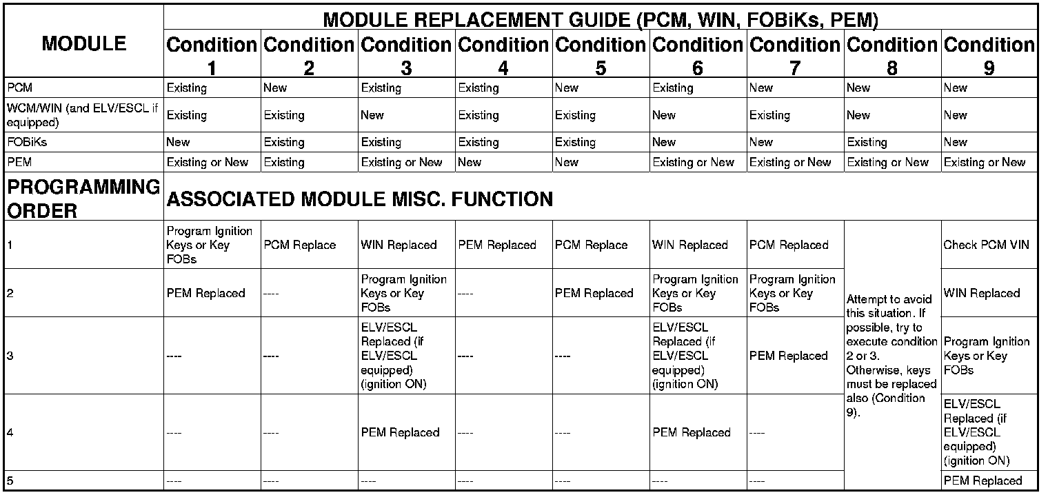 MODULE REPLACEMENT/PROGRAMMING GUIDE (PCM, WIN, FOBiKs, PEM AND ELV/ESCL)