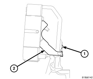 NOTE: To disconnect the ABM wiring connector in the following step, depress the tab (1) in the center of the connector and lift the release lever (2), rotating it upward to the top of the connector, or until the connector is fully released from the module socket.