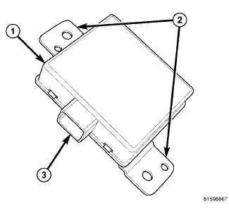 An intrusion module (1) is part of the premium version of the Vehicle Theft Alarm (VTA) in the Vehicle Theft Security System (VTSS). The premium version of the VTA is only available in vehicles built for certain markets, where the additional features offered by this system are required. The intrusion module is located in the passenger compartment. This unit is designed to work in conjunction with the intrusion sensor transmitter and intrusion sensor receiver to provide interior motion detection and serves as the interface between the Totally Integrated Power Module (TIPM), the ElectroMechanical Instrument Cluster (EMIC) (also known as the Cab Compartment Node/CCN) and the alarm siren.