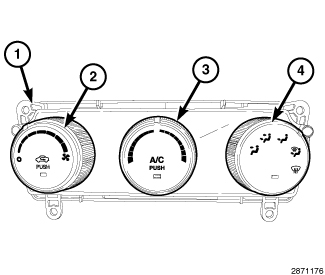 - a rotary control for mode control of the discharged air (4). This control also contains a push button function for turning the rear window defogger system on and off. The control contains an indicator lamp that illuminates when the rear window defogger system is in operation.