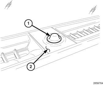 2. Align the tab on the sun sensor (1) with the slot in the opening in the defroster grille (2) and install the sensor onto the grille. Make sure that the sensor is fully engaged to the defroster grille.