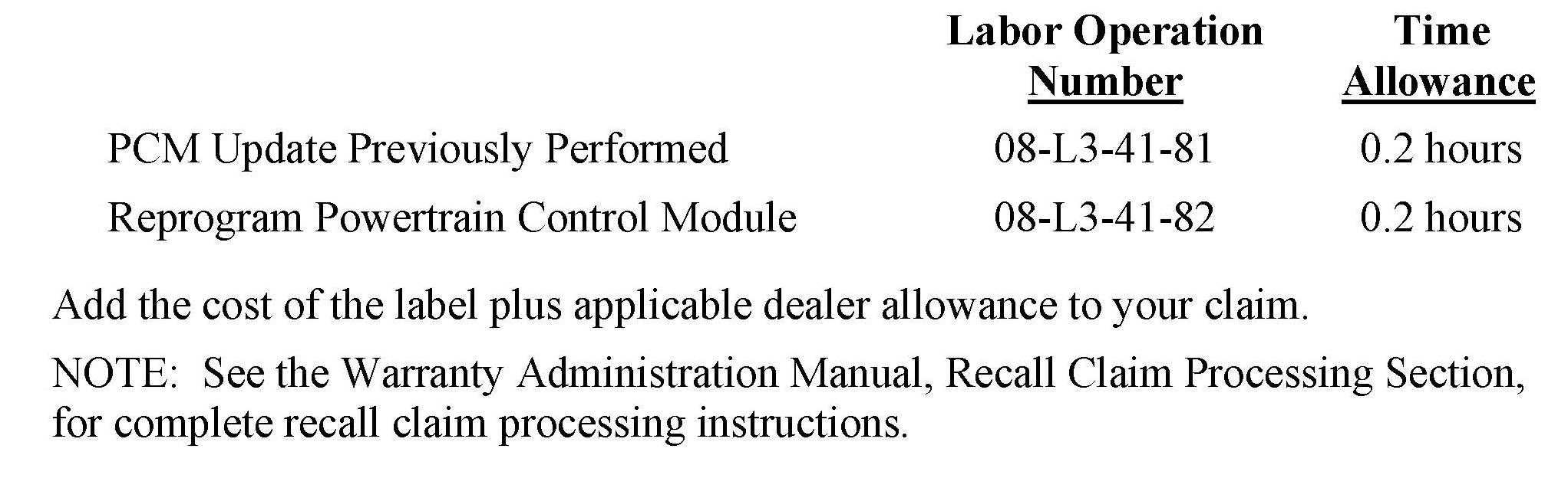 Use one of the labor operation numbers and time allowances shown.