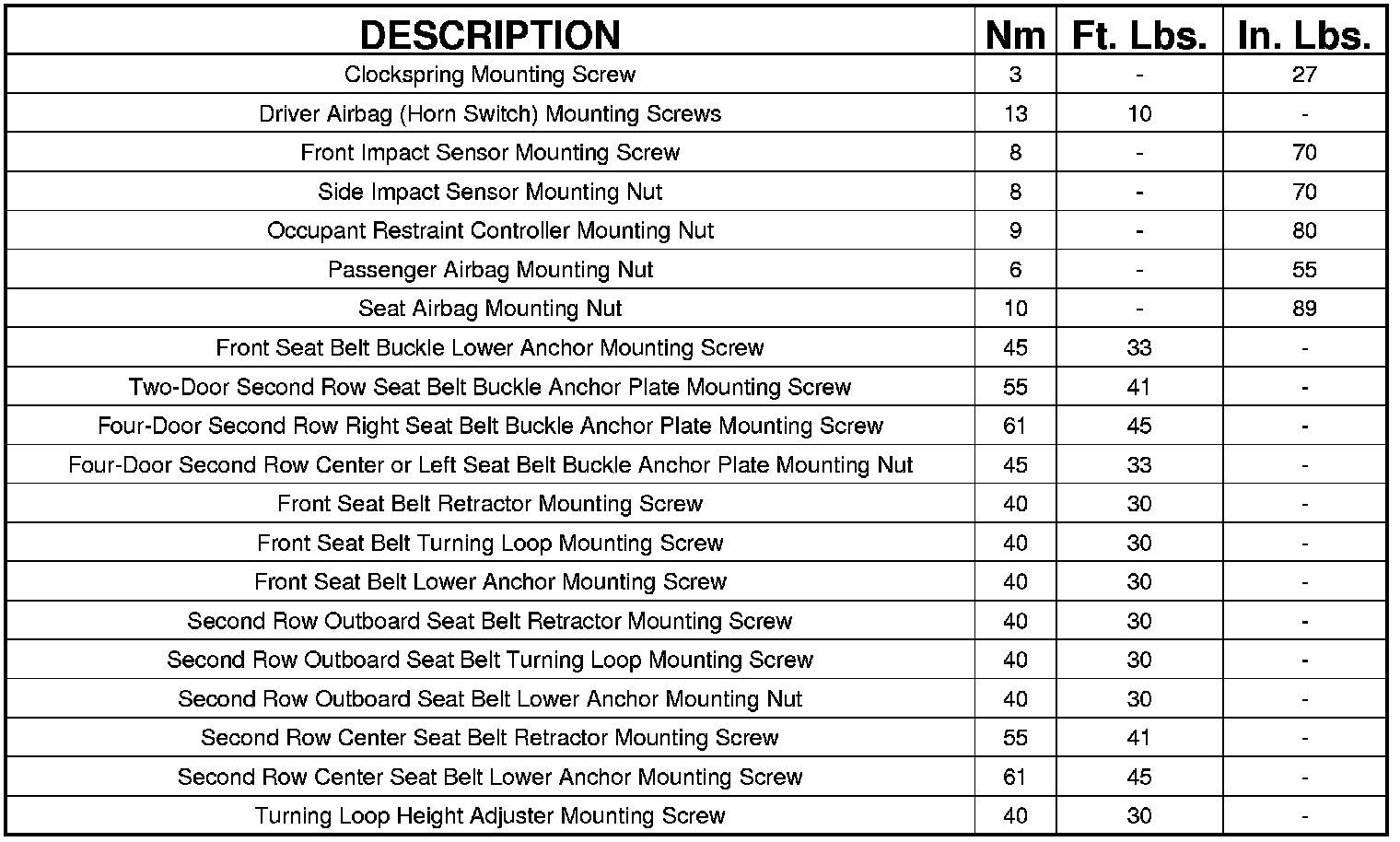 TORQUE SPECIFICATIONS