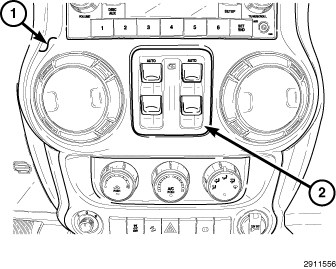 1. Position the window switch assembly (2) and connect electrical harness connectors.