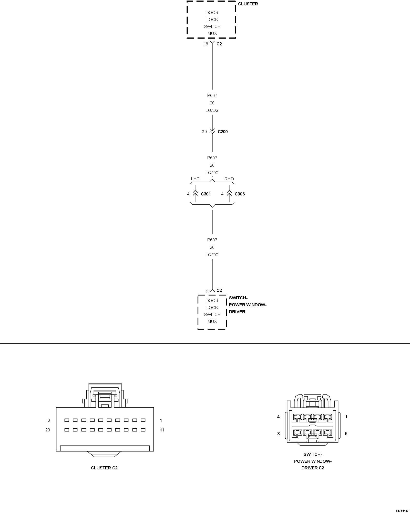 4. (P697) DOOR LOCK SWITCH MUX CIRCUIT SHORT TO GROUND