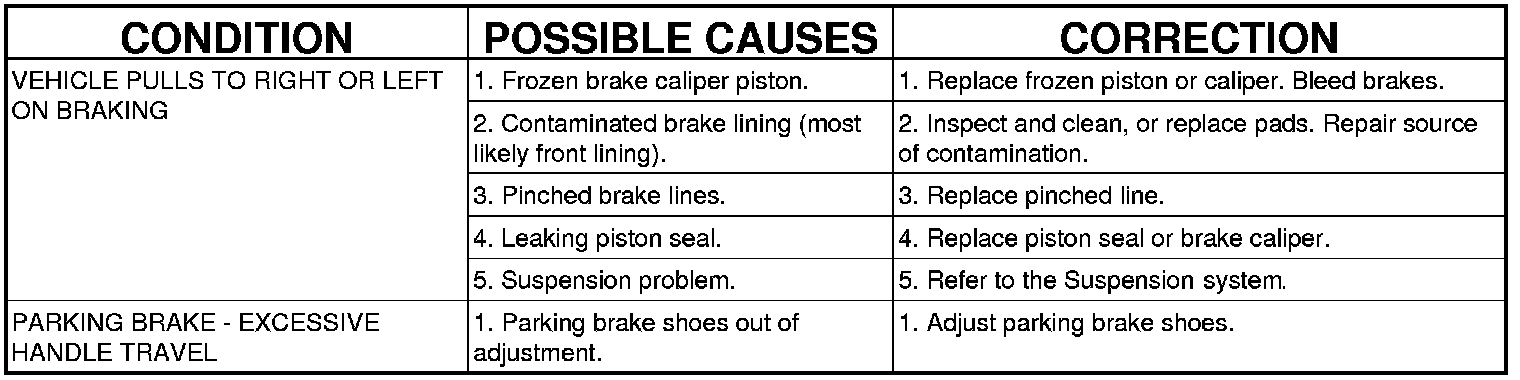 DIAGNOSIS AND TESTING - BASE BRAKE SYSTEM DIAGNOSIS CHARTS
