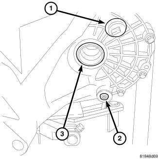 The transaxle fill plug (1) is located on the left side of the transaxle differential area. The fluid level should be within 3/16 inch from the bottom of the transaxle fill hole (vehicle must be level when checking).