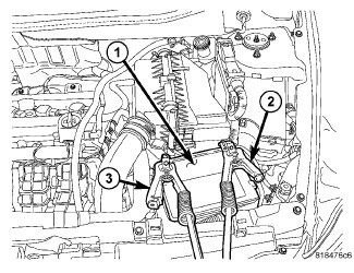 1. Raise hood on disabled vehicle and visually inspect engine compartment for: