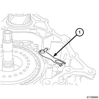 35. Install the detent spring (1) (Figure 25) onto the transaxle case. Install the bolt to hold the detent spring to the transaxle case and tighten the mounting bolt to 7 Nm (61 in.lbs.).