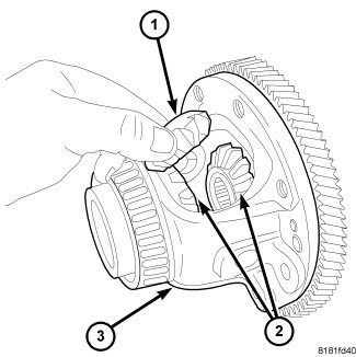 4. Roll the pinion gears (3)(Figure 4) and shims (1) out of the carrier (2).