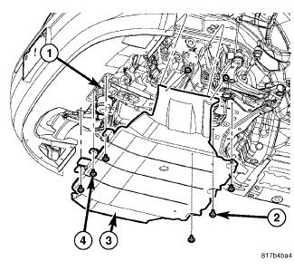 5. Install the three front screws (4), the three rear screws (2) and on push pin fastener into the center of the belly pan.