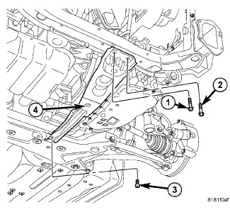 1. Install the fore/aft crossmember and install the engine anti-roll mount (3) through bolt (2).