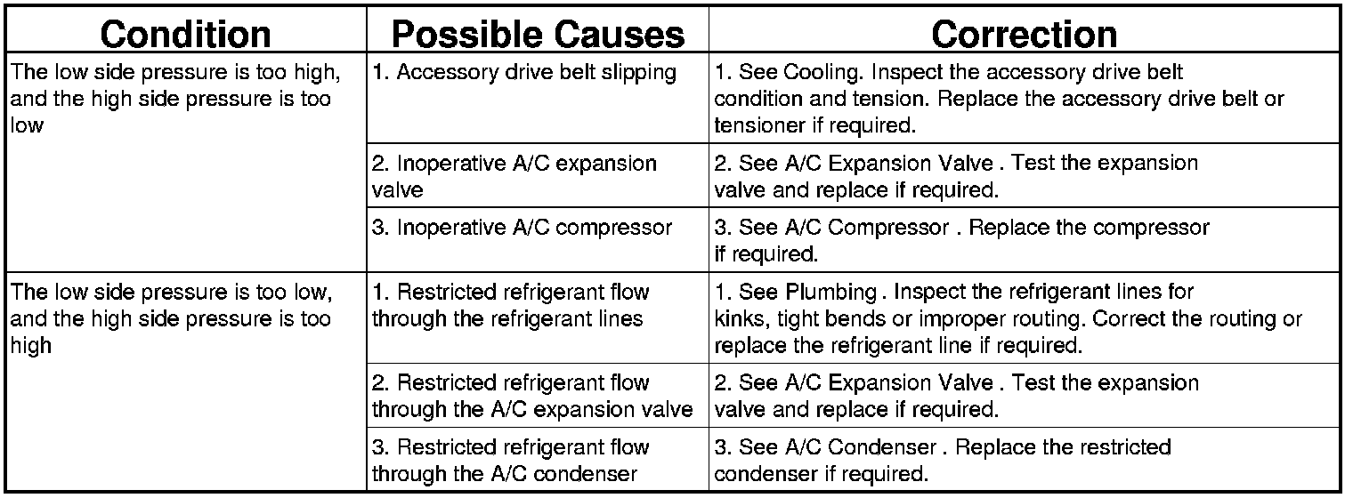 A/C PERFORMANCE TEMPERATURE AND PRESSURE