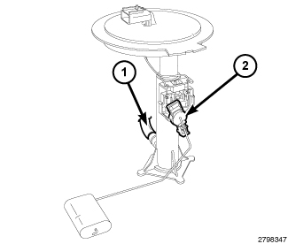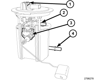 The fuel level sending unit (3) is the only serviceable component of the primary fuel pump module. If the electric fuel pump, fuel pressure regulator or fuel filter requires service, the primary fuel pump module must be replaced as an assembly.