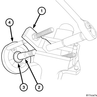 12. Remove carrier bearings (3) using Splitter (4), Installer (2) and a press (1).