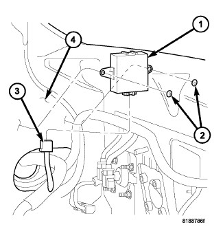 Move into place, install bolts (2) and tighten to 11 Nm (97 in. lbs.).