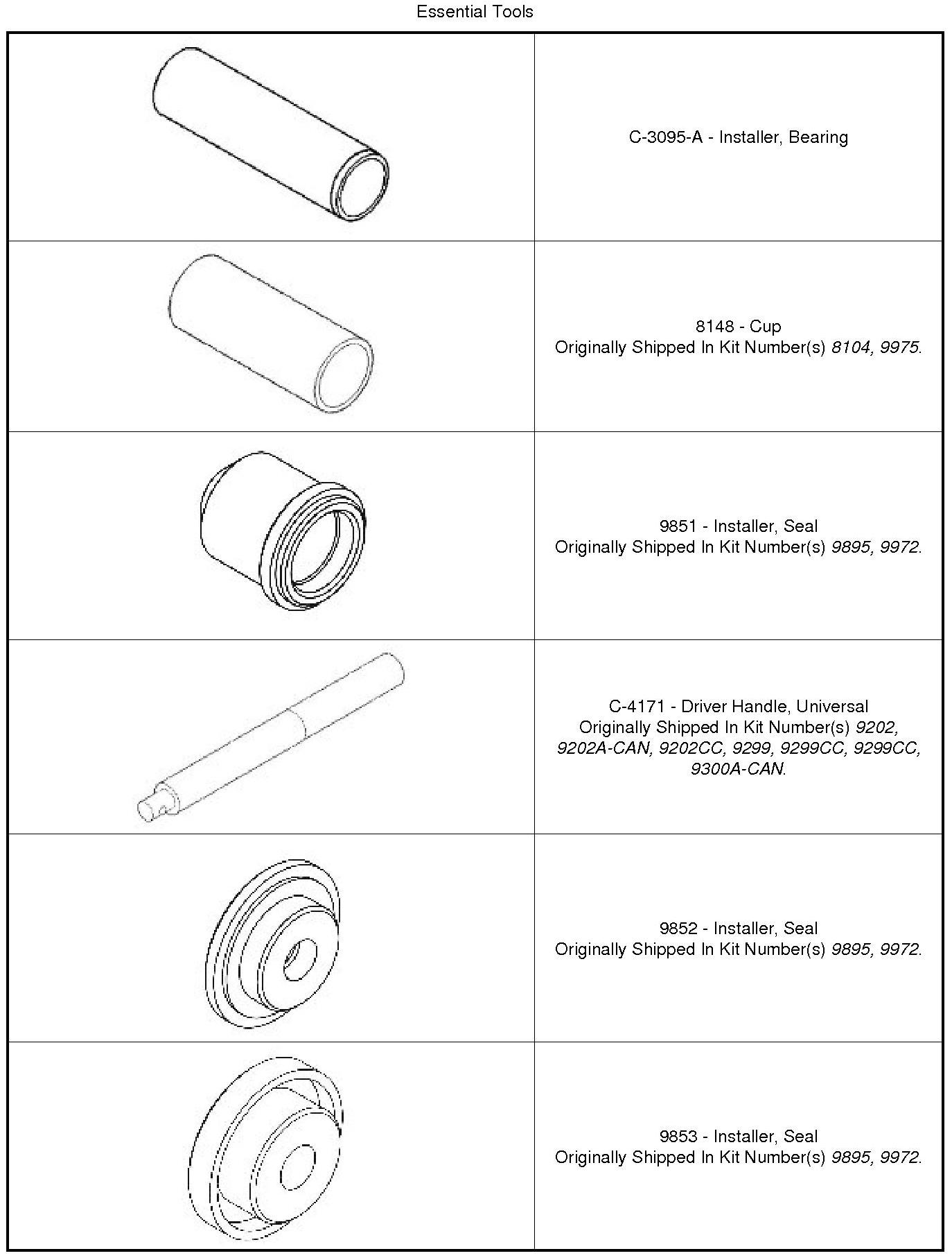 17. Install the output shaft tail bearing cup using Installer and Handle.