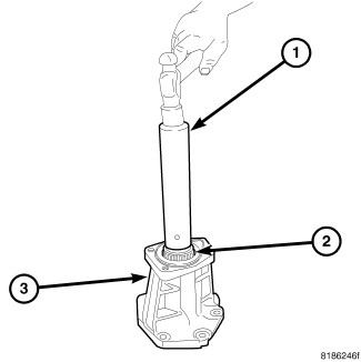 6. Install the shim (3) under the bearing cup (1) in the case side.