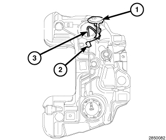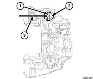 6. Using caution not to bend the float arm (2), lift the auxiliary fuel pump module (1) and the auxiliary fuel pump module supply line (3) out of the fuel tank as an assembly.