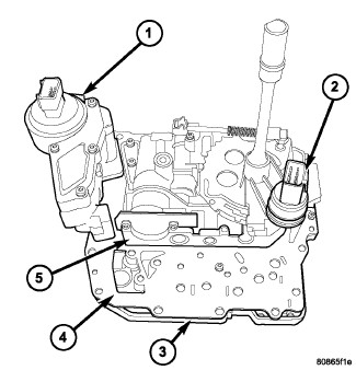 The Transmission Range Sensor (TRS) (2) (Figure 1) is mounted to the top of the valve body inside the transmission and can only be serviced by removing the valve body assembly. The electrical connector extends through the transmission case.