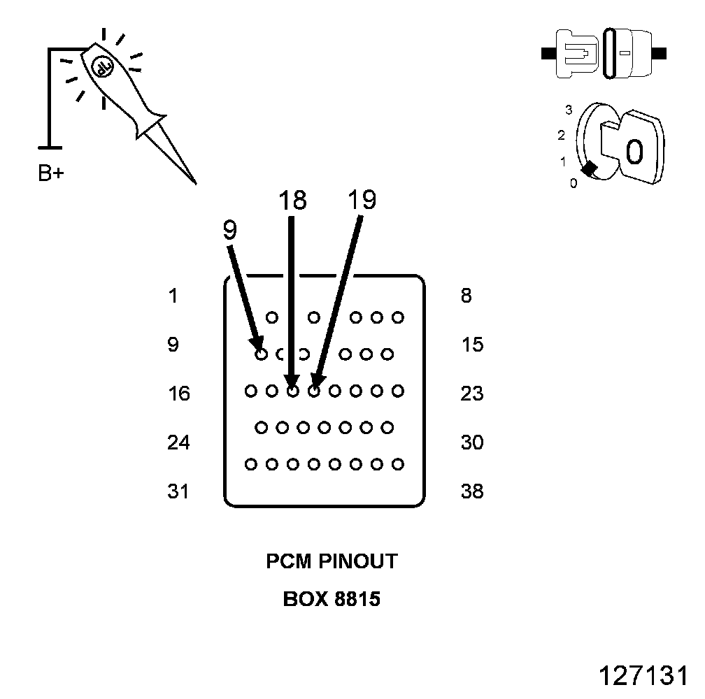 CAUTION: Do not probe the PCM harness connectors. Probing the PCM harness connectors will damage the PCM terminals resulting in poor terminal to pin connection. Install the PCM Pinout Box (8815A) to perform diagnosis.