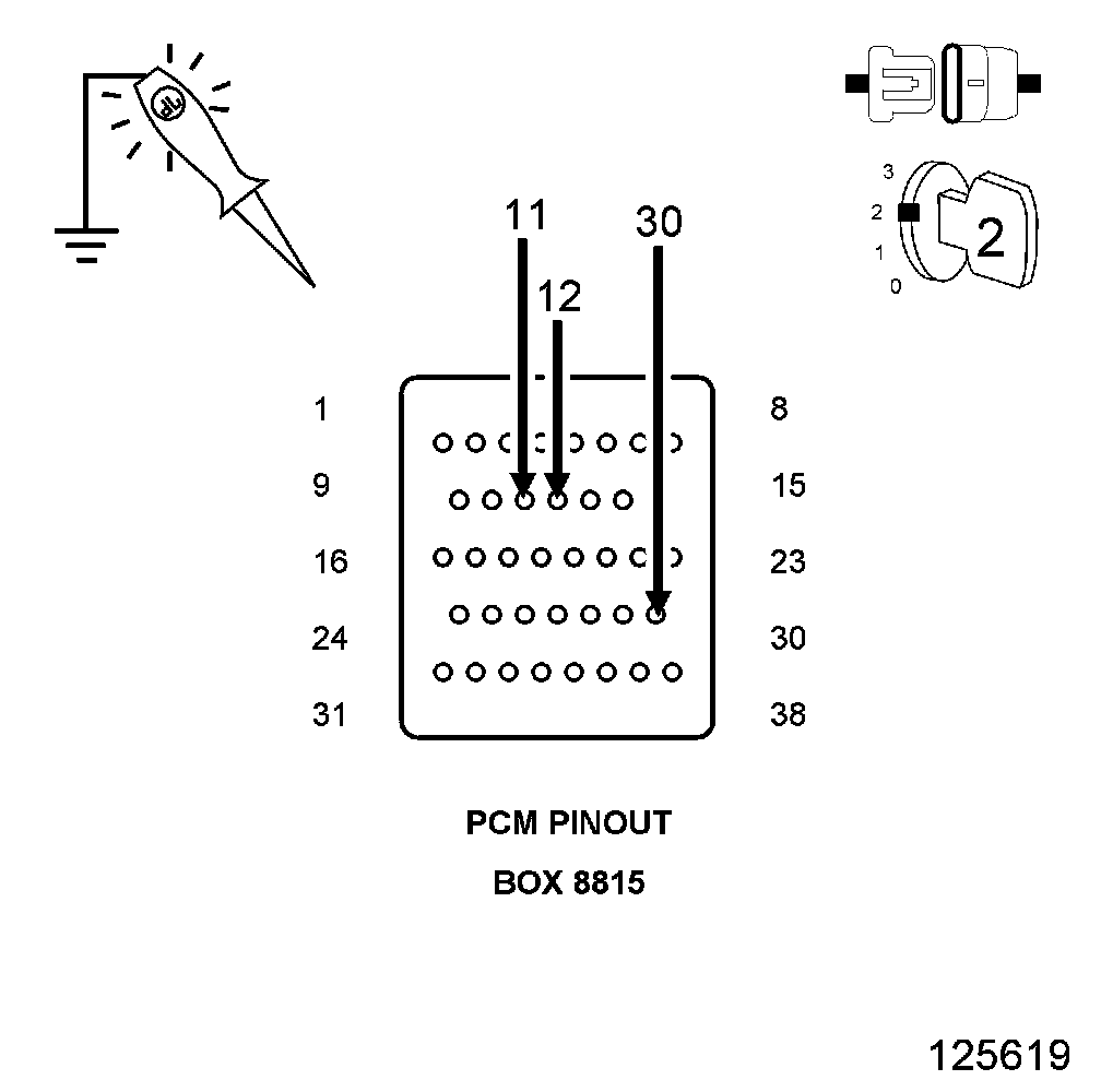 2. Using a 12 volt test light connected to ground, check the PCM Fused Ignition circuits.