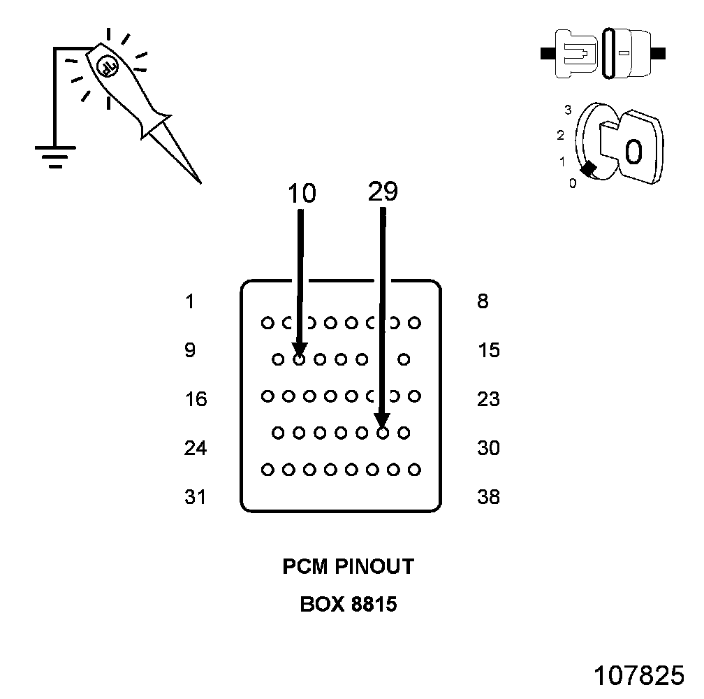 2. Using a 12 volt test light connected to 12 volts, check the PCM ground circuits.