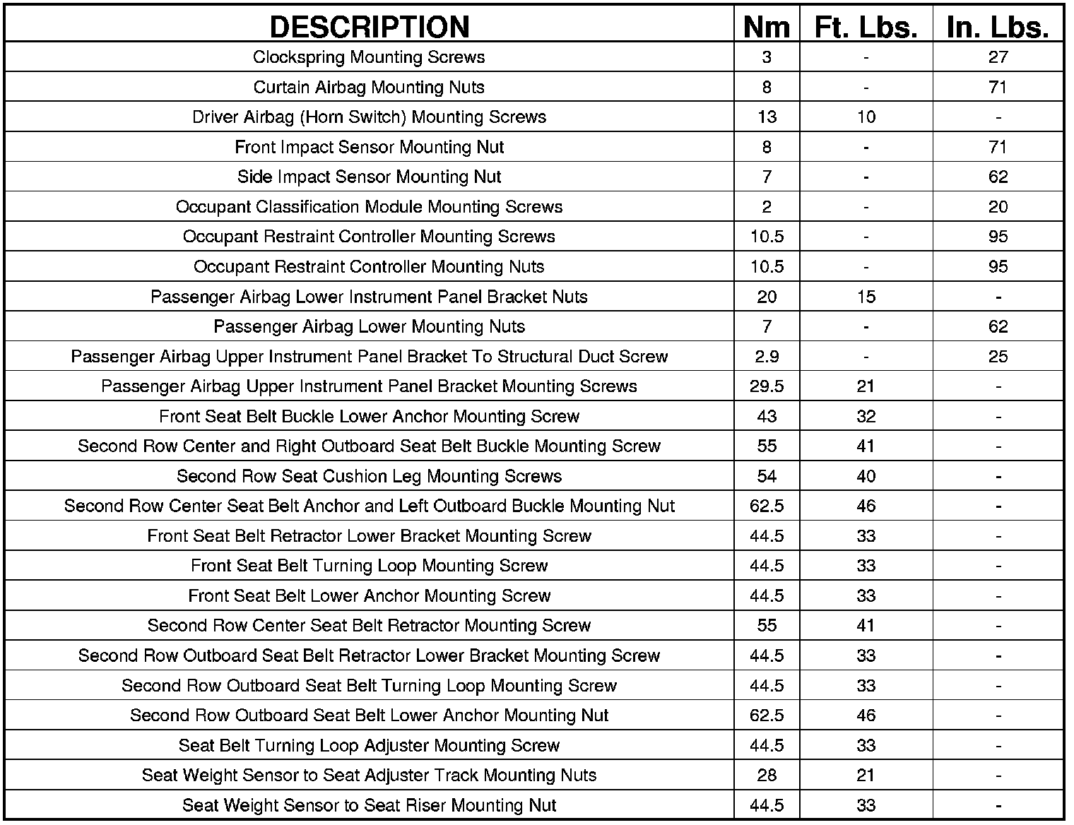TORQUE SPECIFICATIONS