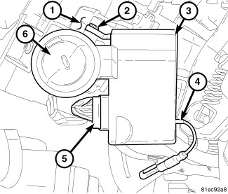 9. Reinstall the right multi-function switch onto the integral mounting bracket (1) on the right side of the clockspring Right Multifunction Switch - Installation.