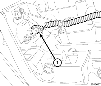 4. Install the sensor (1) into the engine block with a slight rocking and twisting action.