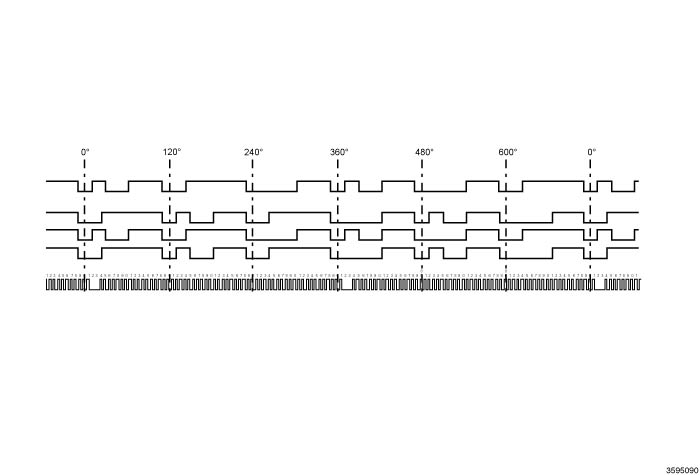 1. Pattern indicates a clean (good) square wave form that is identical to what the cam and crank should be. The square wave patterns are uniformed and are identical to one another.
