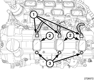 NOTE: The LH ignition coils are shown, the RH ignition coils are similar.
