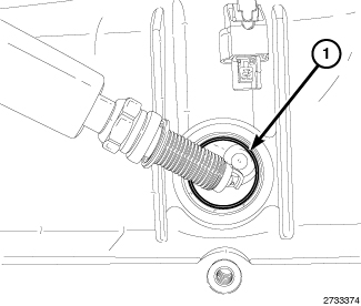 CAUTION: The spark plug tubes (1) are a thin wall design. Avoid damaging the spark plug tubes. Damage to the spark plug tube can result in oil leaks.