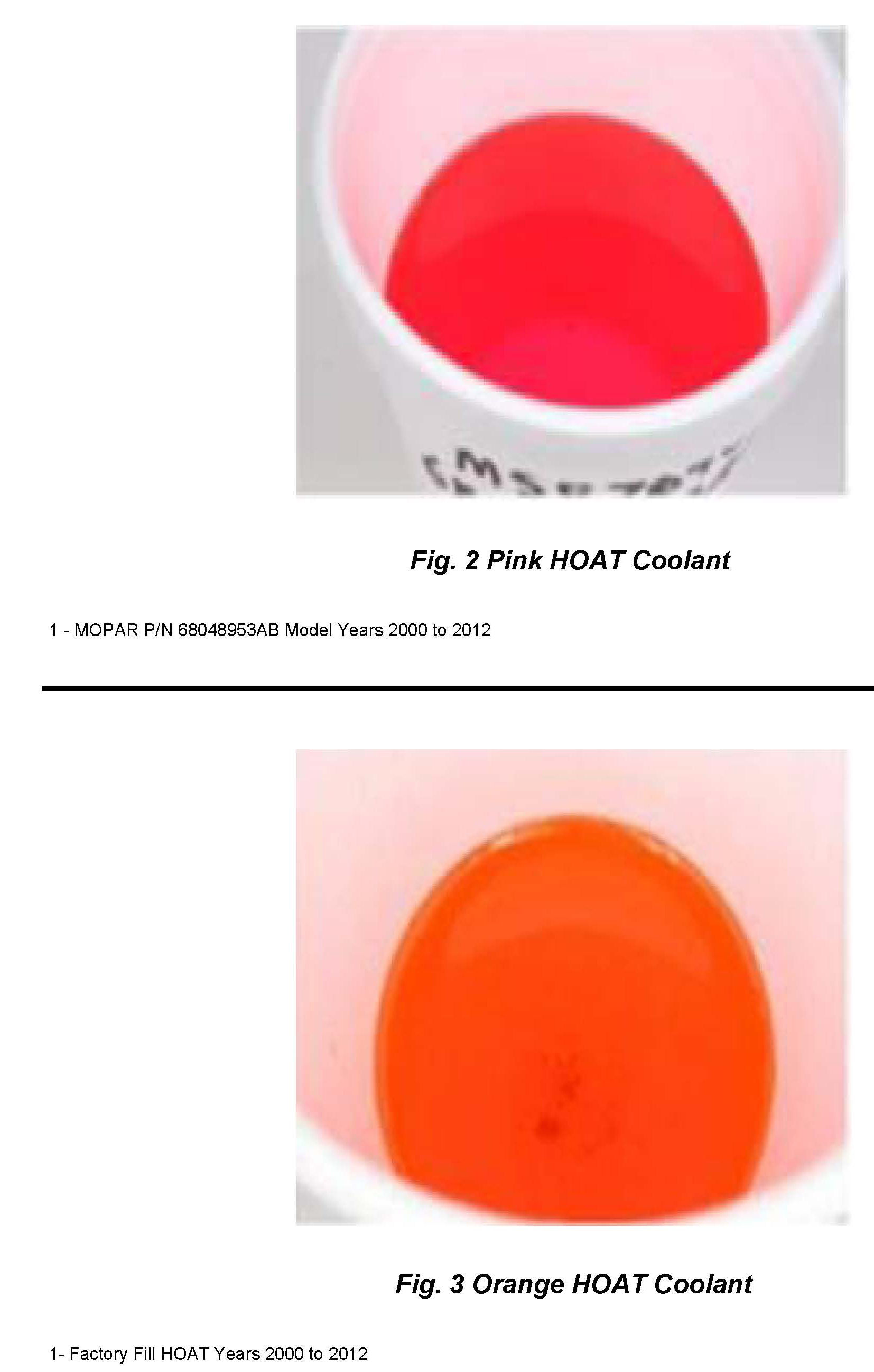 P/N 68048953AB Pink Or Factory Fill HOAT Orange (Fig. 2) or (Fig. 3)) or any other coolants have been mixed, it will be necessary to flush the cooling system.