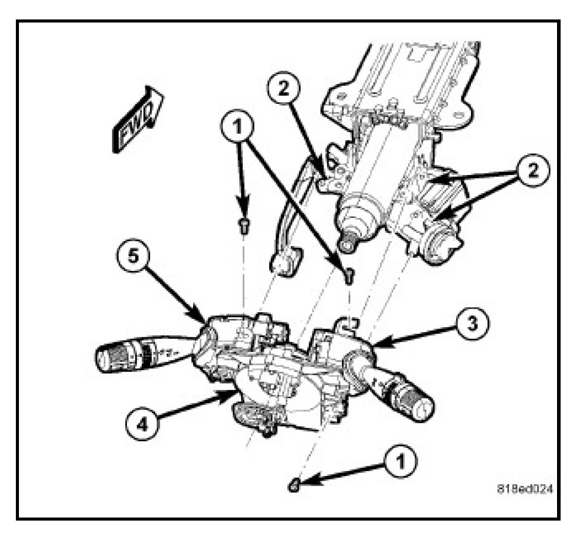 7. Remove the right multi-function switch (3) from the clockspring (4).