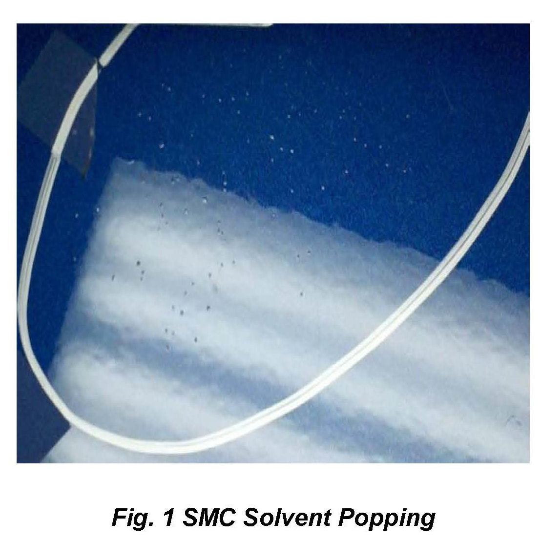 The application of corrosion protection on SMC (plastic) panels is unnecessary and not recommended. It can adversely affect the paint or any other coating applied to the substrate. In some instances it can cause a condition commonly referred to as solvent popping shown in (Fig. 1). Although the condition appears to be repairable, it will reoccur because the SMC substrate is porous and has essentially absorbed the corrosion inhibitor, which will cause the condition to reoccur. Panel replacement is required when solvent popping is evident on SMC (plastic) panels when corrosion protection materials have been applied.