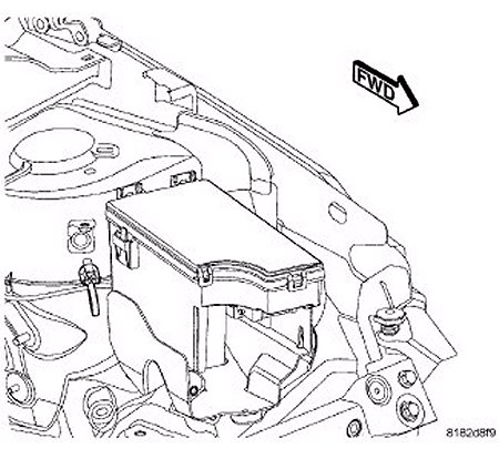 The molded plastic TIPM housing is located in the left front corner of the engine compartment.