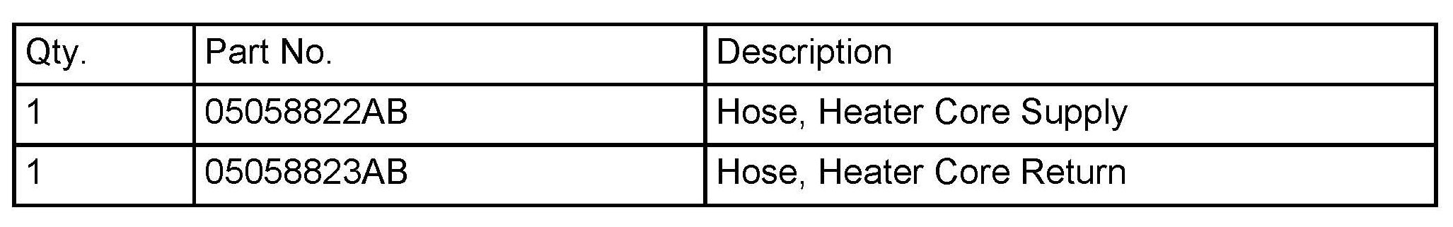 9. Install new heater core supply hose (p/n 05058822AB) and heater core return hose (p/n 05058823AB).