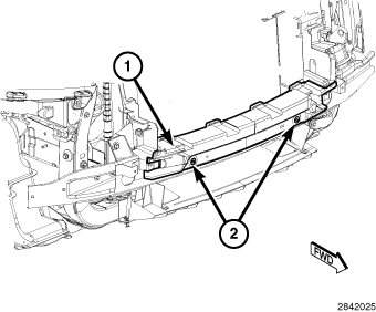 9. Remove the outer two fasteners (3) that secure the bumper beam to the radiator closure panel and remove the beam (2).