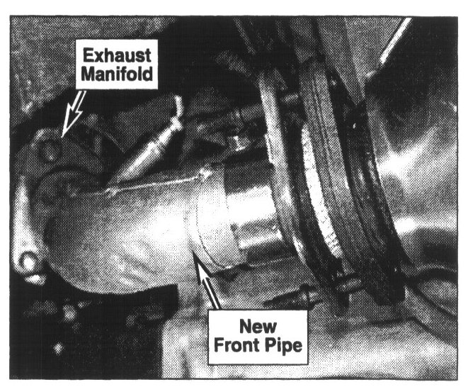 12. Install new front pipe to exhaust manifold using the new gasket and self-locking nuts supplied in kit (torque 27-38 lb-ft).